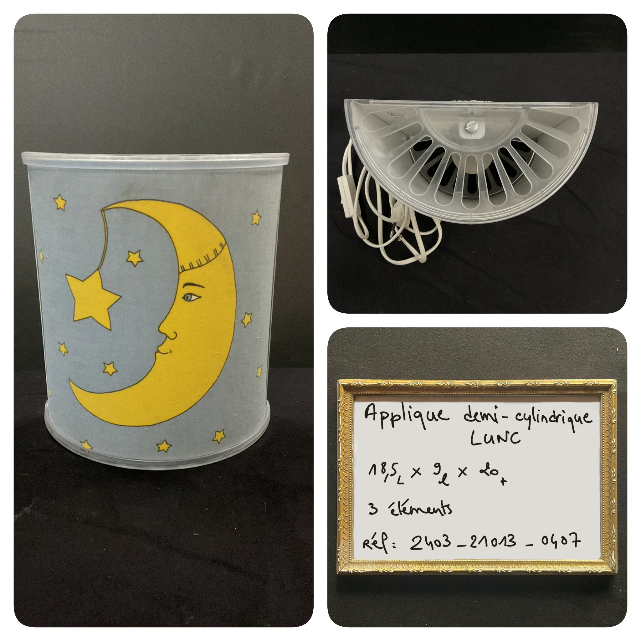 Applique demi-cylindrique motif lune chambre d'enfant