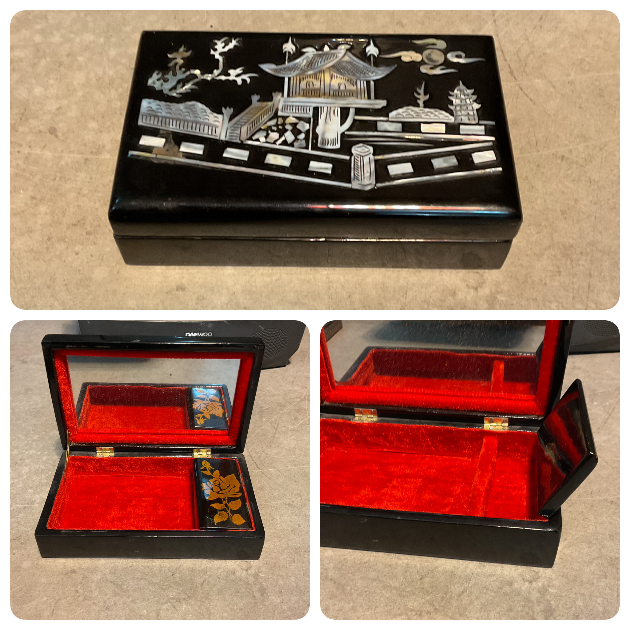 Boite à bijoux asiatique noir, intérieur velours rouge