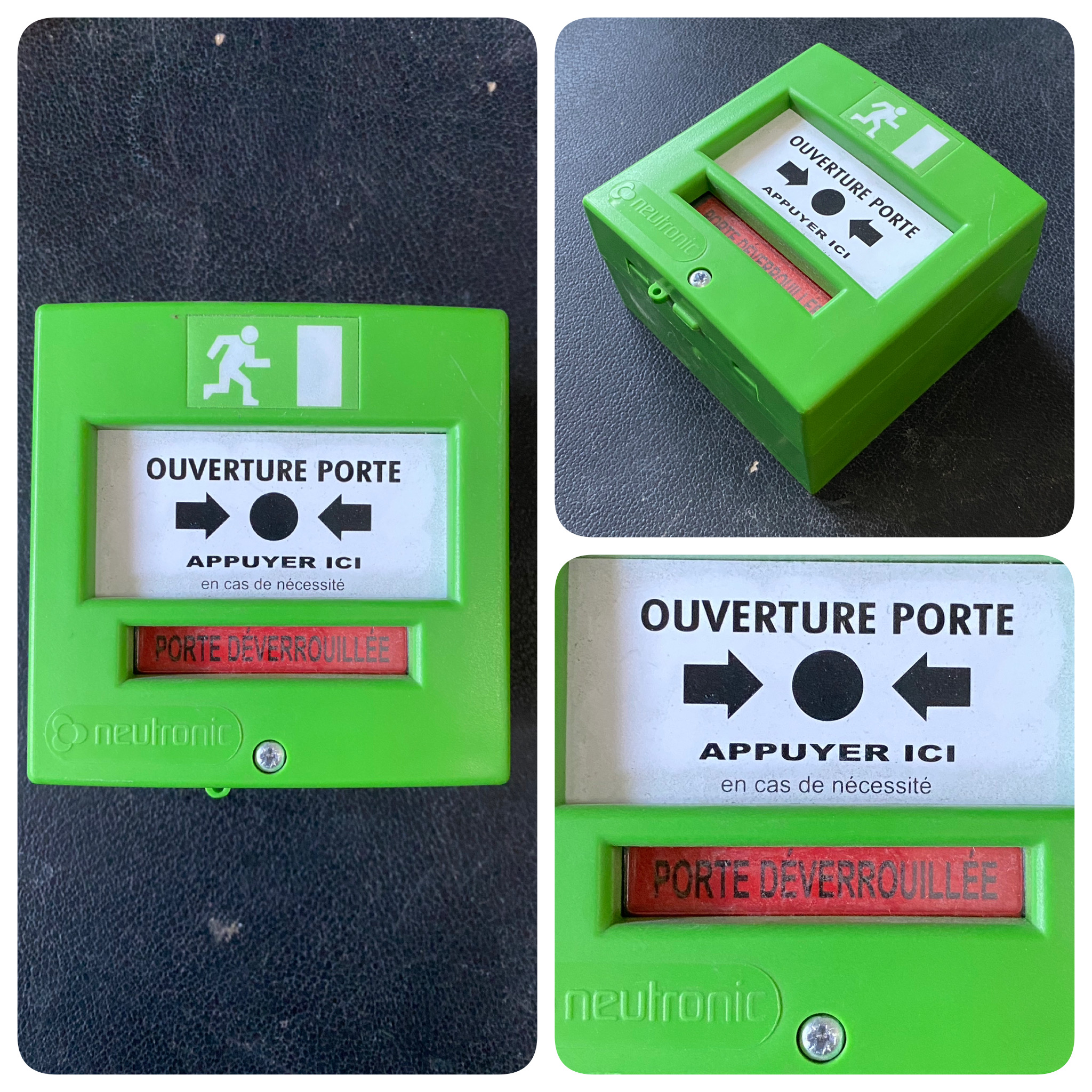 Bouton d'alarme incendie vert pomme sans vitre