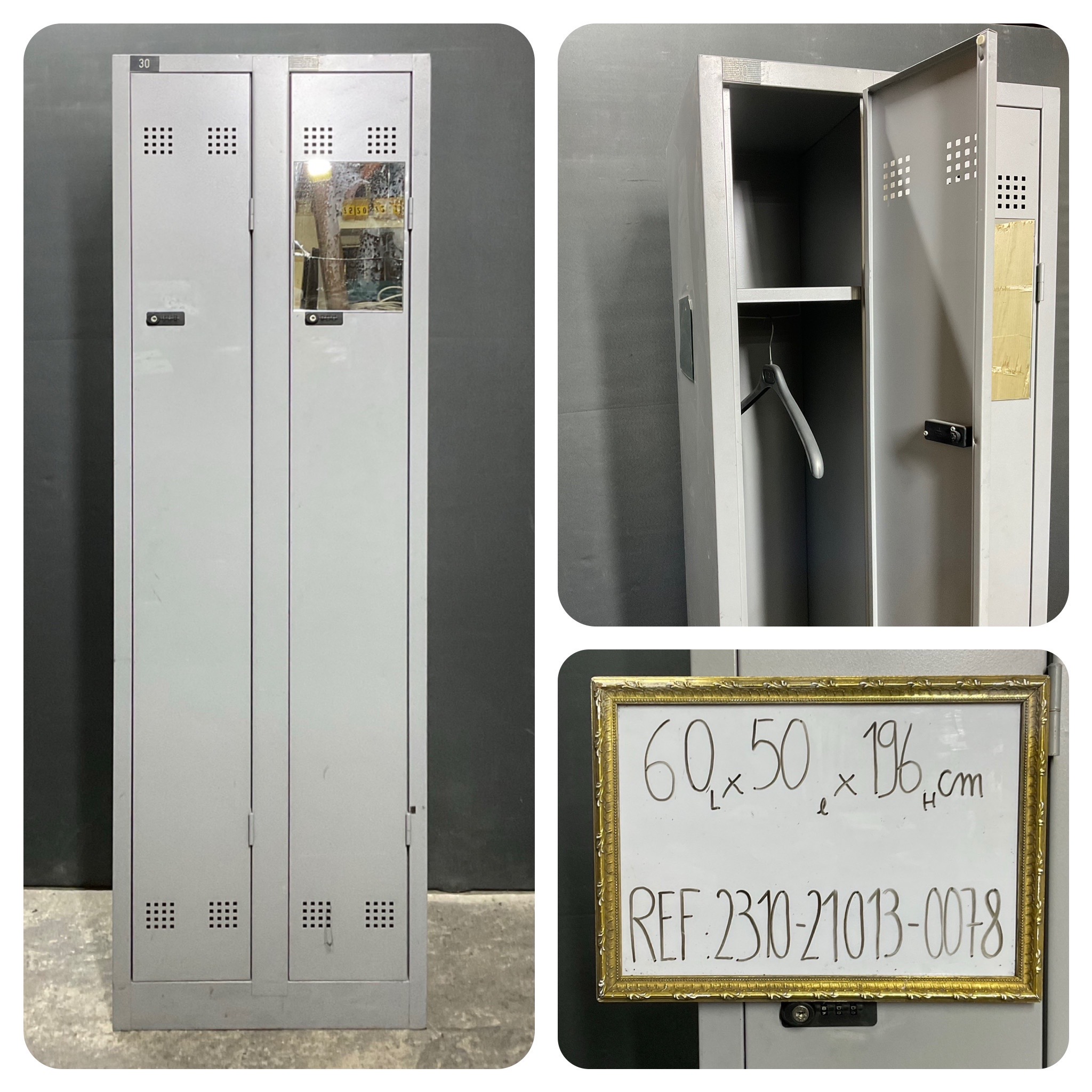 Casier vestiaire, deux portes, avec miroir étagère et penderie, type commissariat, gris clair