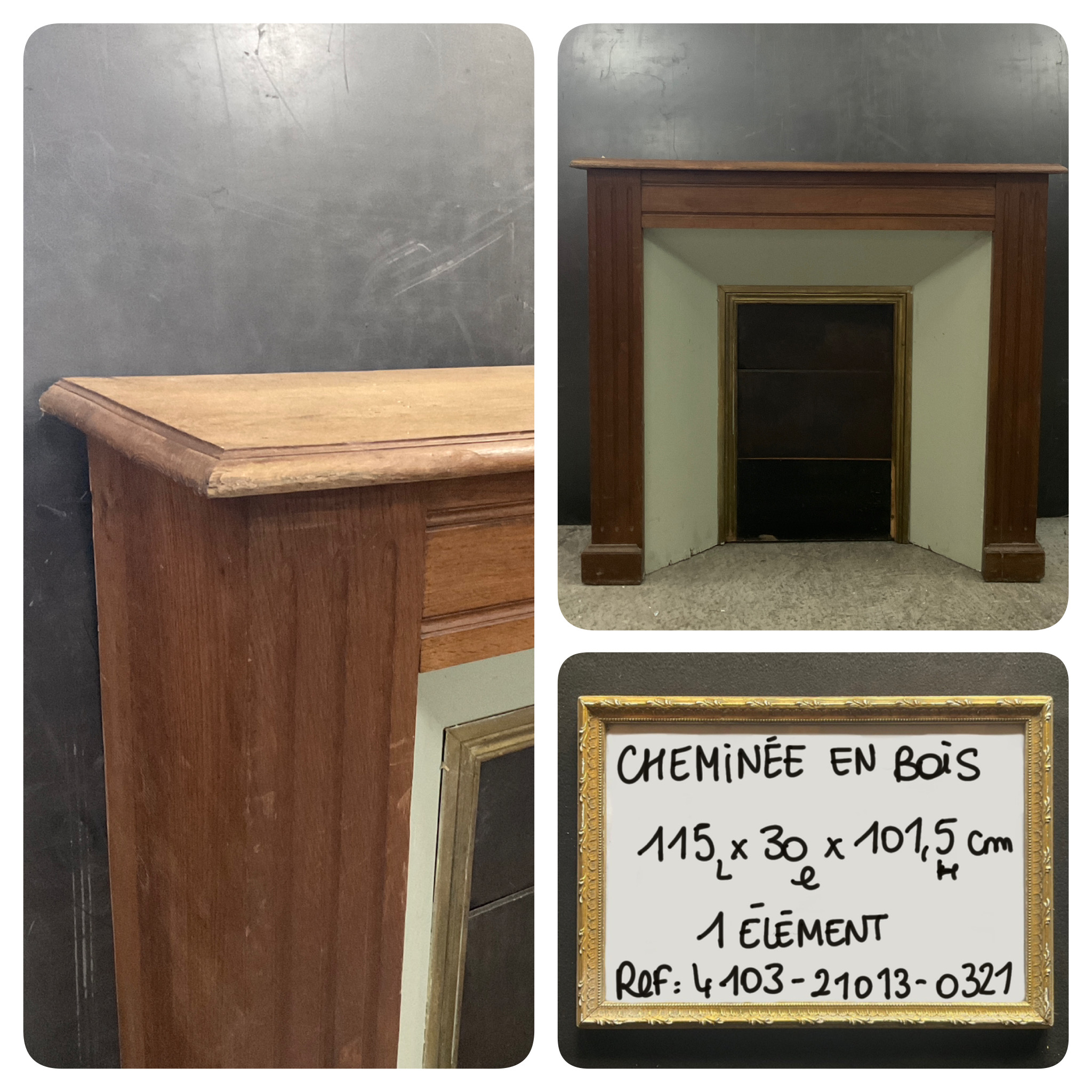 Cheminée en bois classique Haussmannienne Décor Cheminée adaptée pour kit : feuilles Haussmanniennes