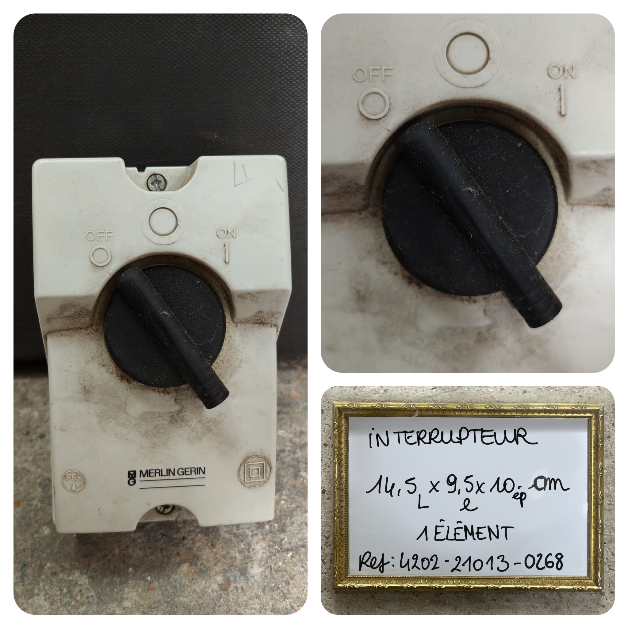 Commutateur électrique. Façade seulement, boîtier vide. Marque "MERLINGERIN".