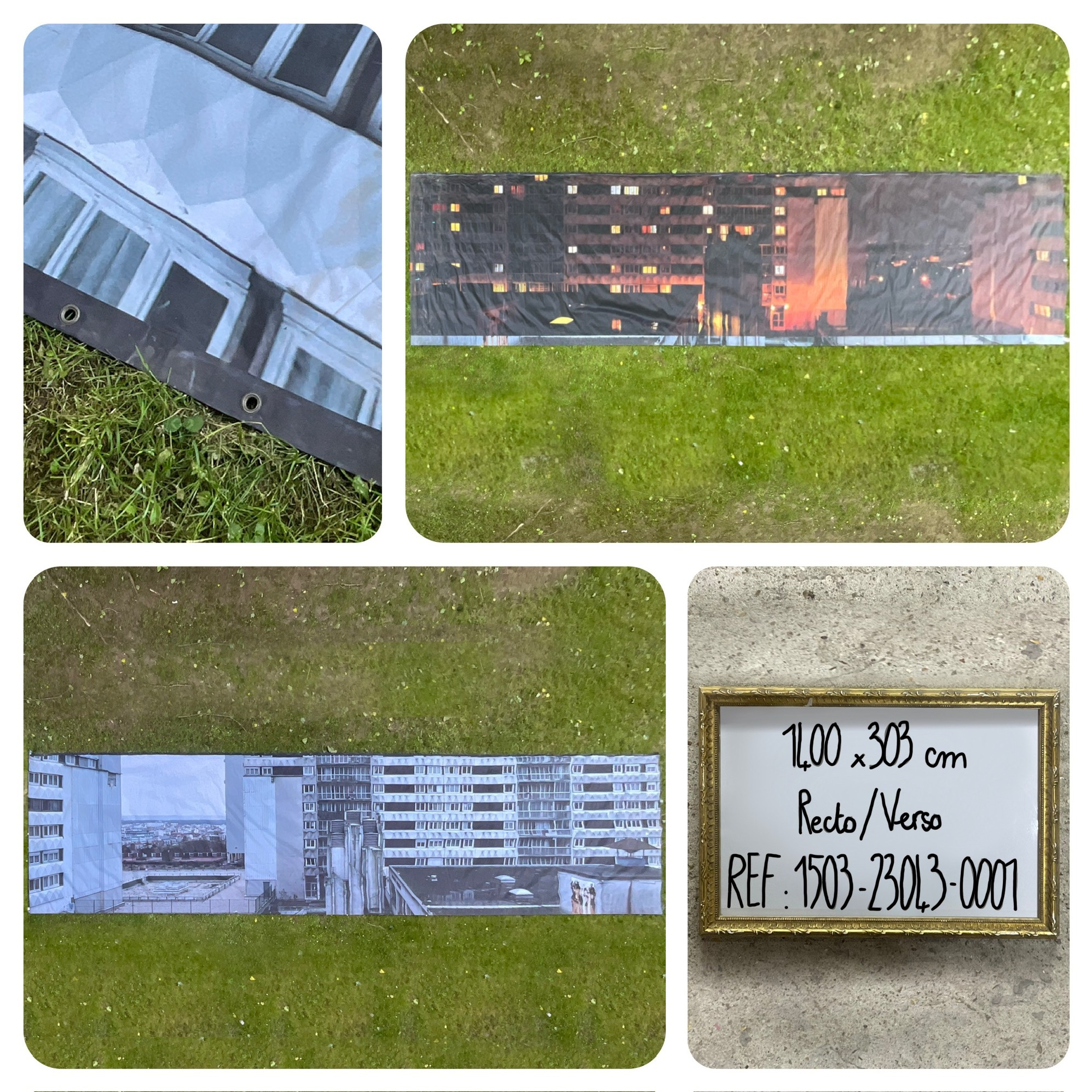 Découverte photo façade d'immeuble moderne - Version jour au recto, version nuit au verso - Bâches plastique - Oeillet e