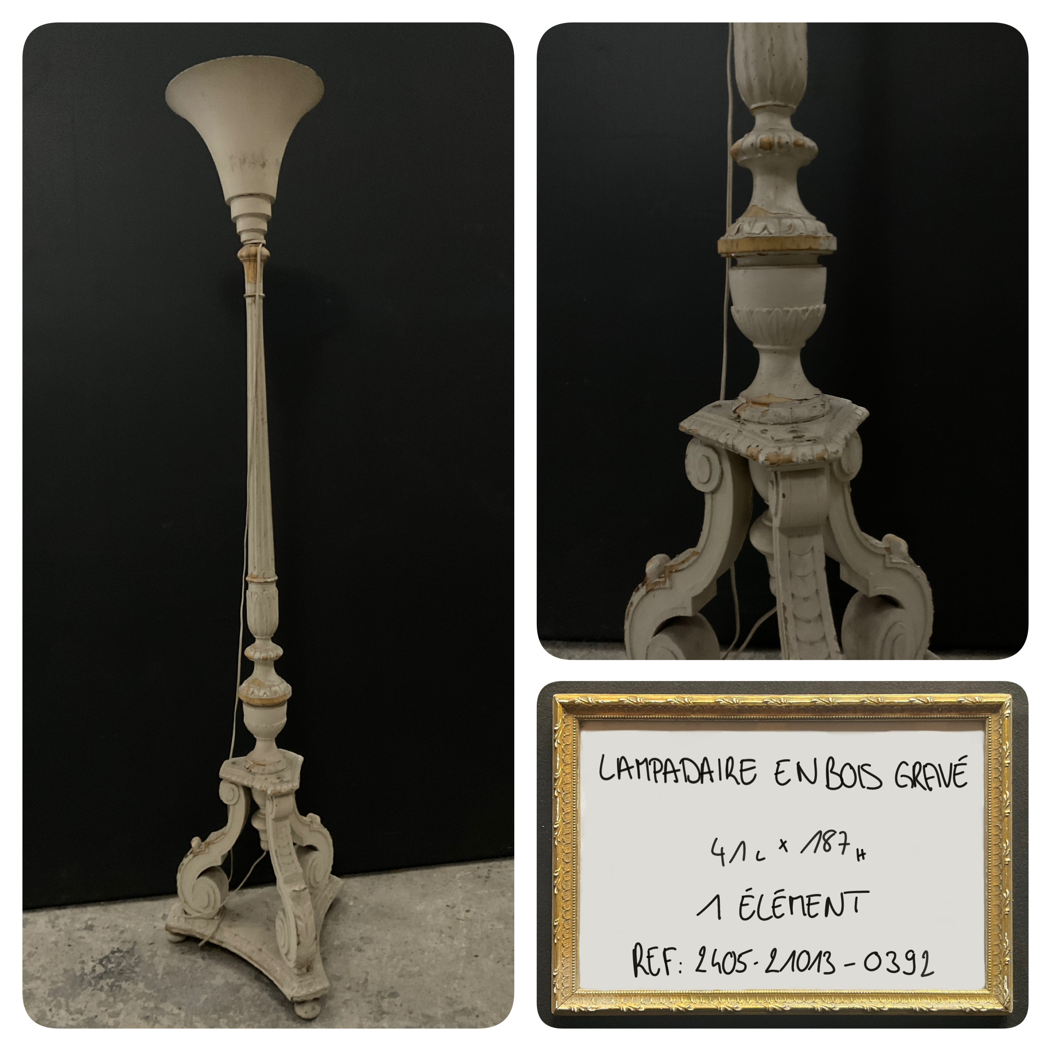 Lampadaire (flambeau d'église revisité) en bois L 41 x H 187 cm