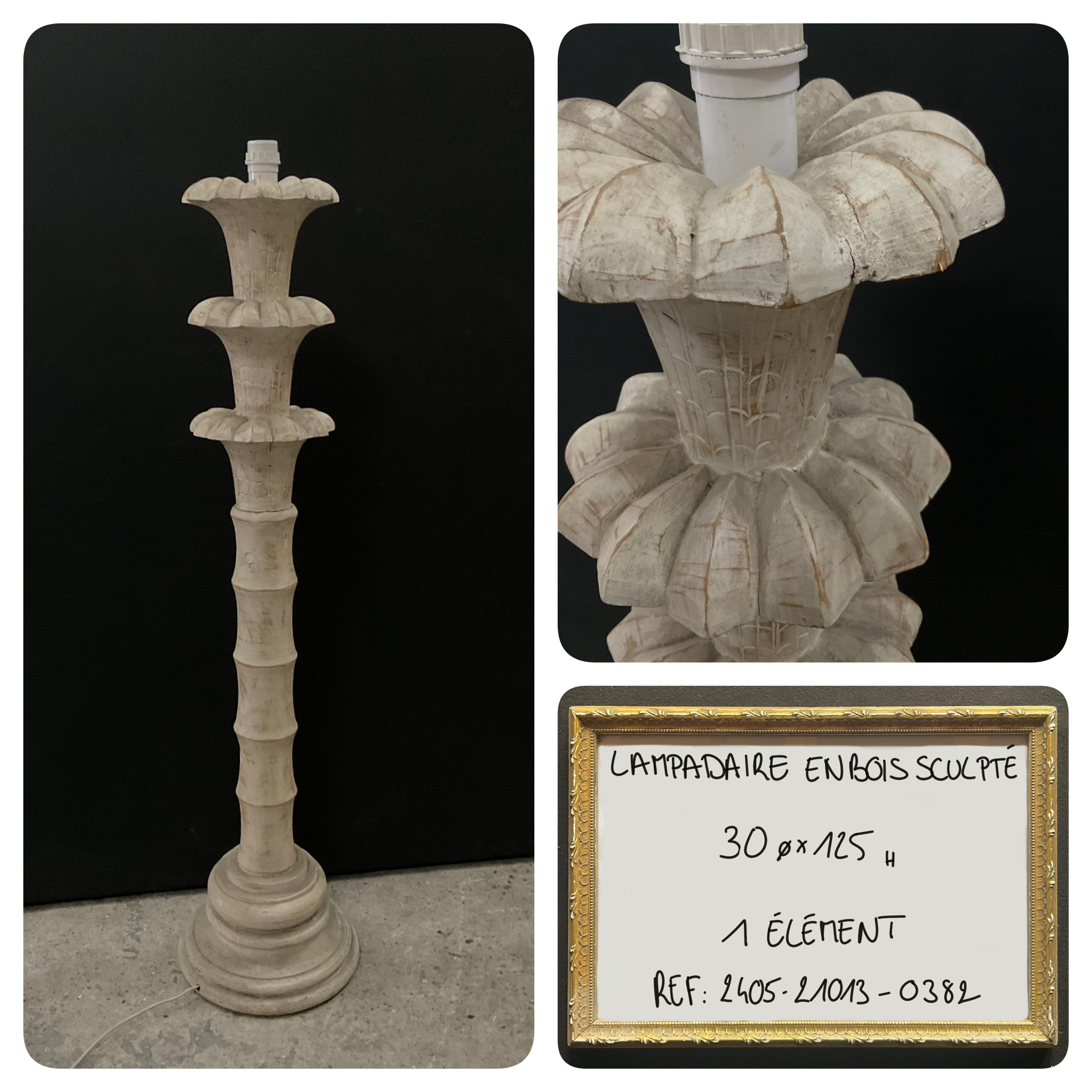 Lampadaire en bois sculpté style Mario H 125 x D 30 cm