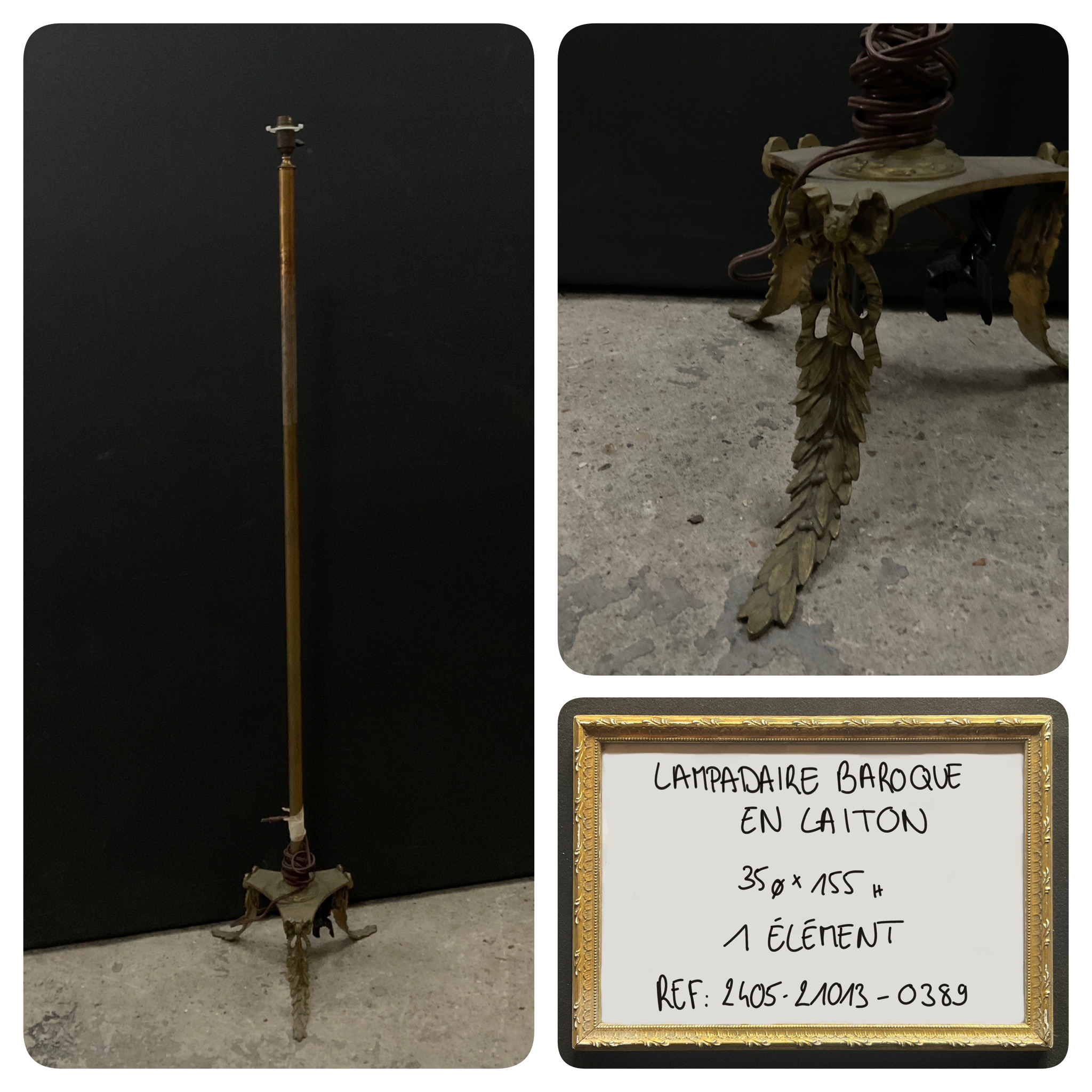 Lampadaire 19ème, tige canellée, tripod feuille de laurier en laiton, H 155 x D 35 cm