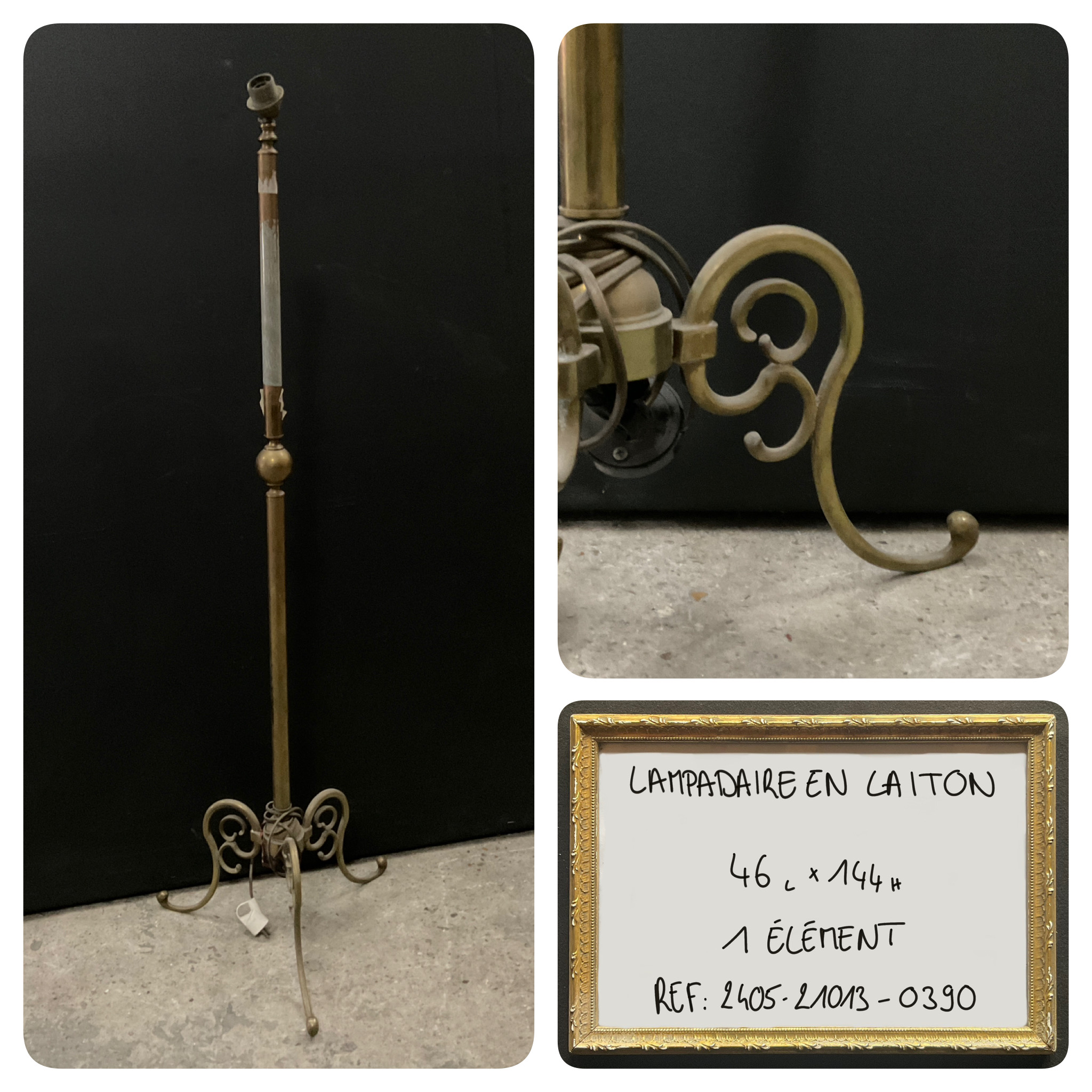 Lampadaire style classique, tripod arabesque, imitation laiton (à reparer), L 46 x H 144 cm