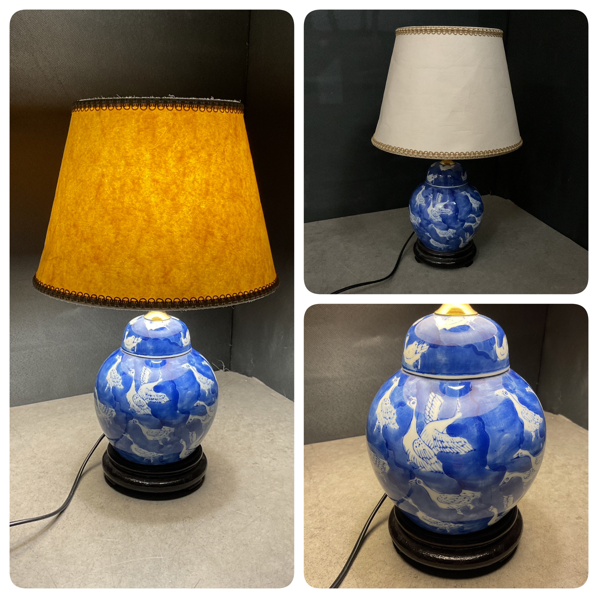 Lampe décor oie en faïence