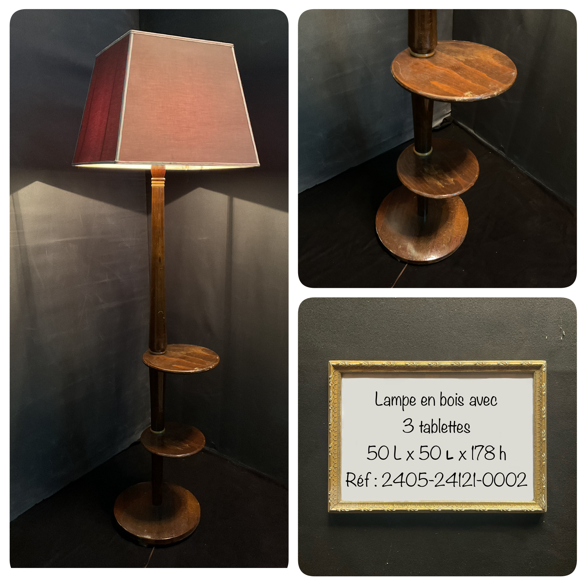 Avec trois tablettes en bois et abat-jour pyramide