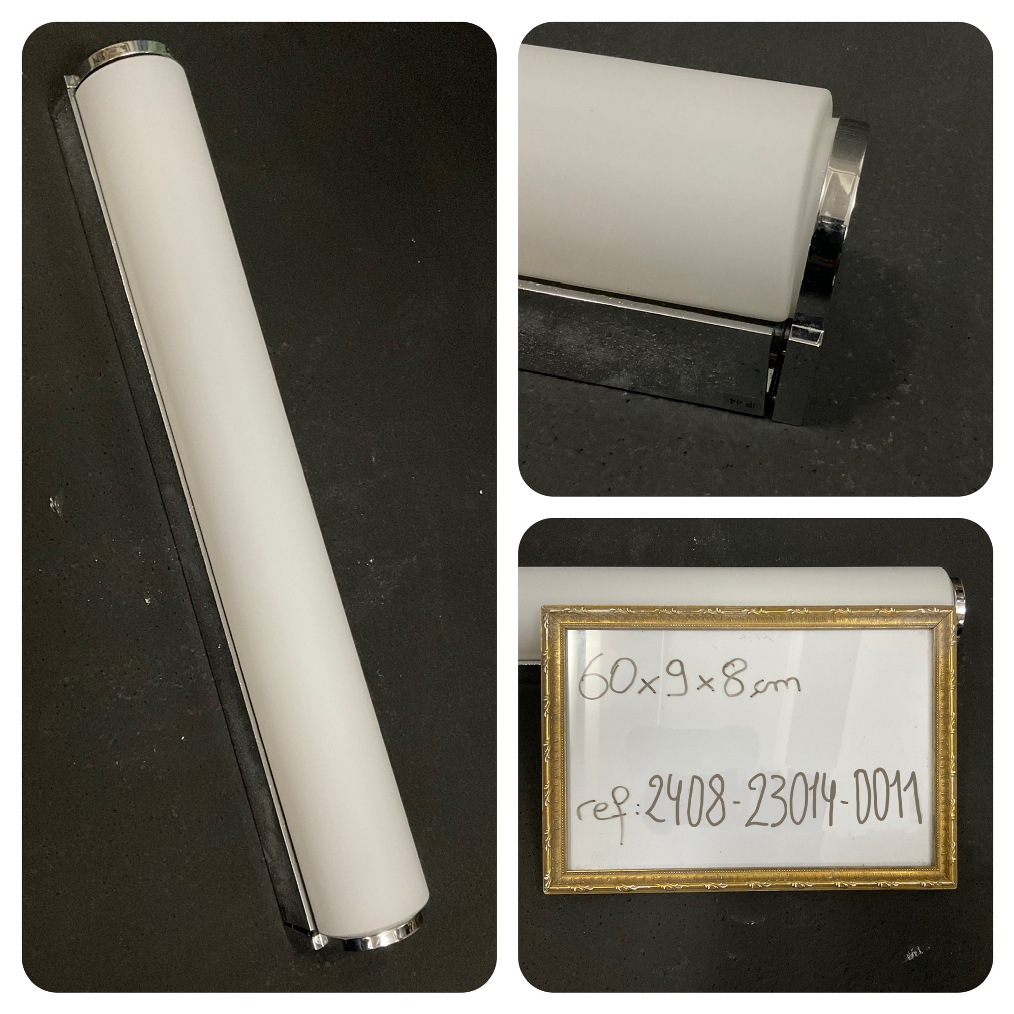 Lampe néon, structure métal argenté et cache tube en verre opaque blanc
