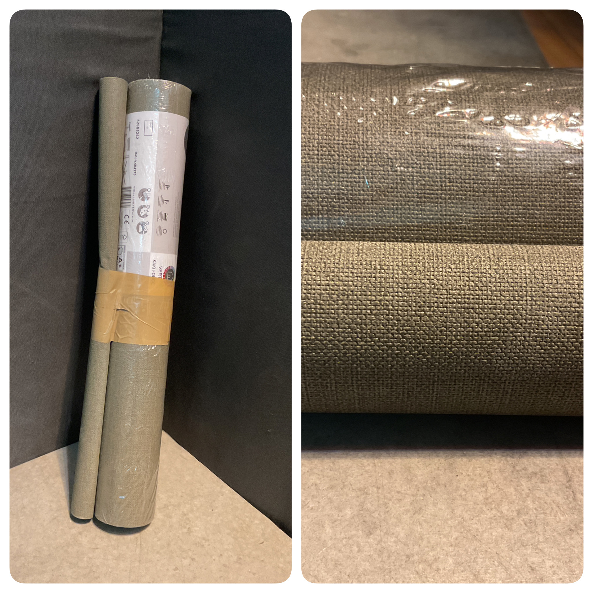 Lot de 2 papier-peint vinyle tissé vert/kaki