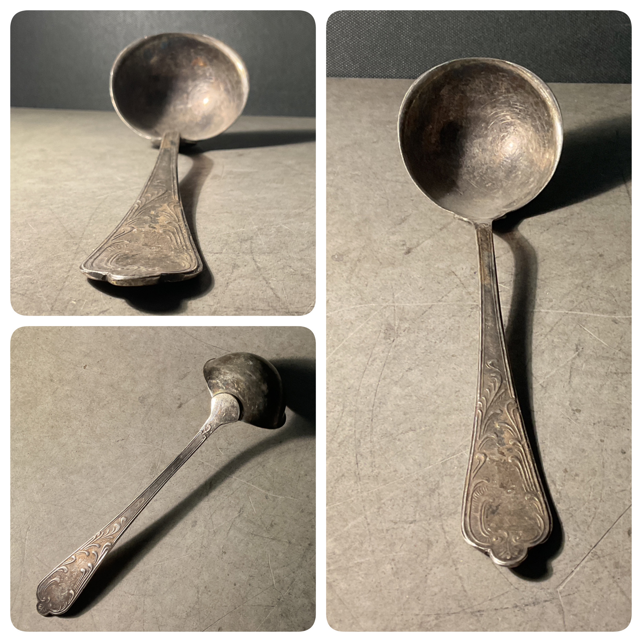 Louche en métal argentée