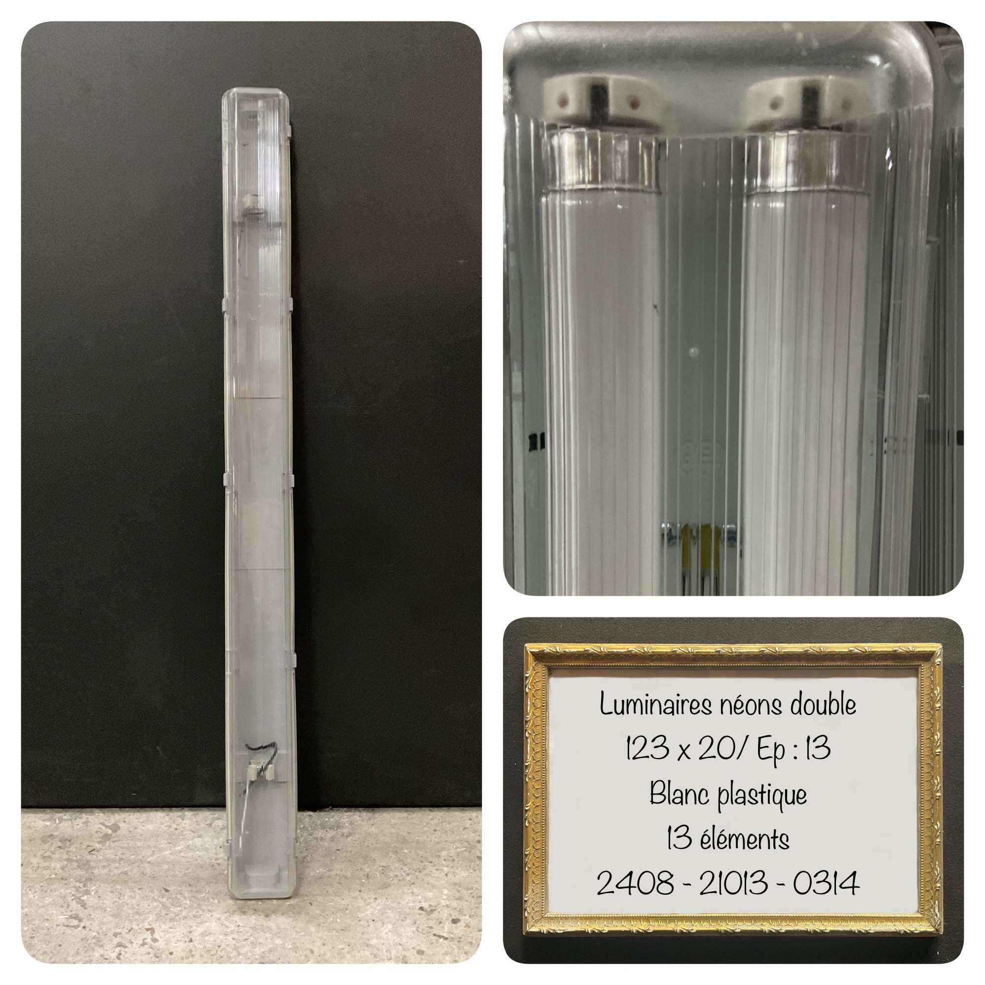 Luminaire néon double 2 réglettes. 123 x 20 cm, 13 éléments