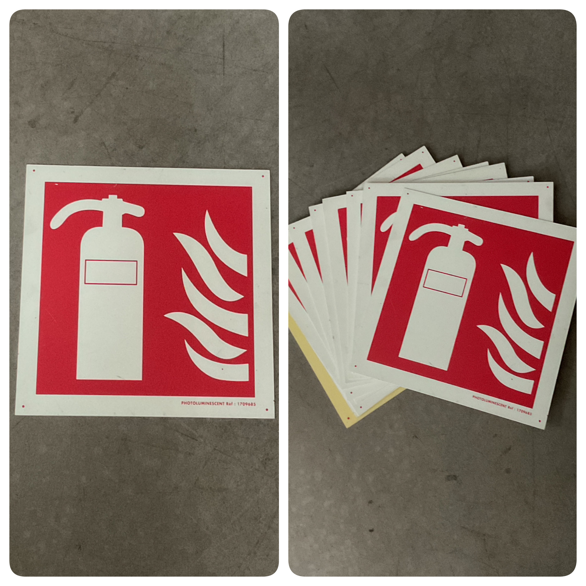 Quelques panneaux avec indication du numéro d'extincteur