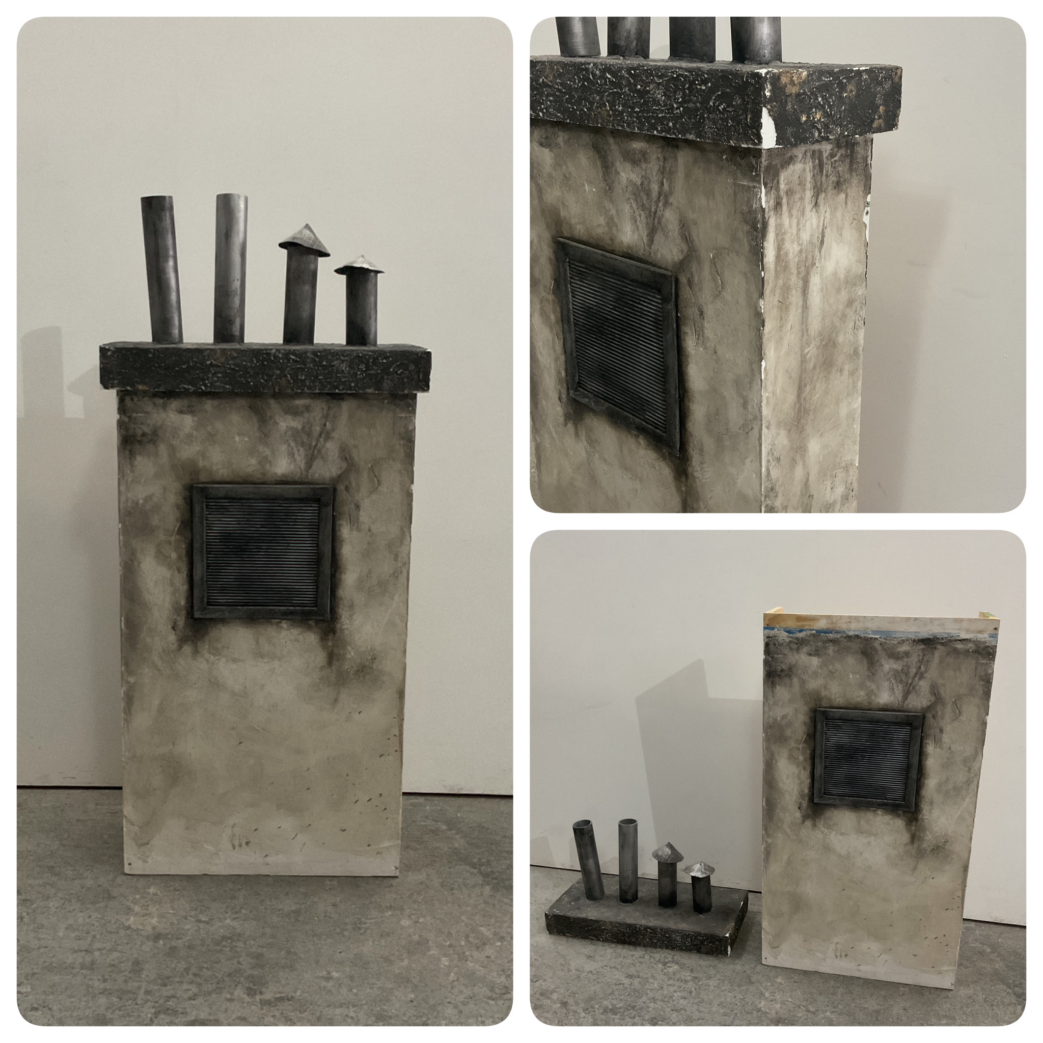 Petite cheminée avec grille d'aération et partie supérieure avec tuyaux (Matière à reprendre un peu sur le côté) Jouable sur 3 faces