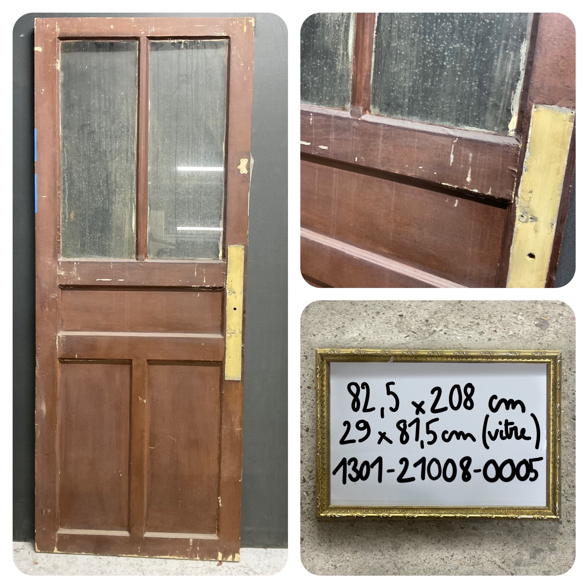 Porte : 208 x 82,5 cm. Vitre : 81,5 x 29 cm