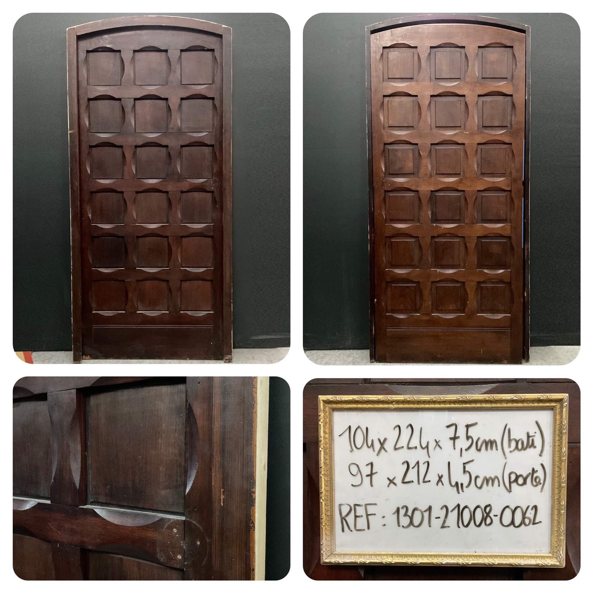 Porte cintrée en bois plein avec bâti, praticable