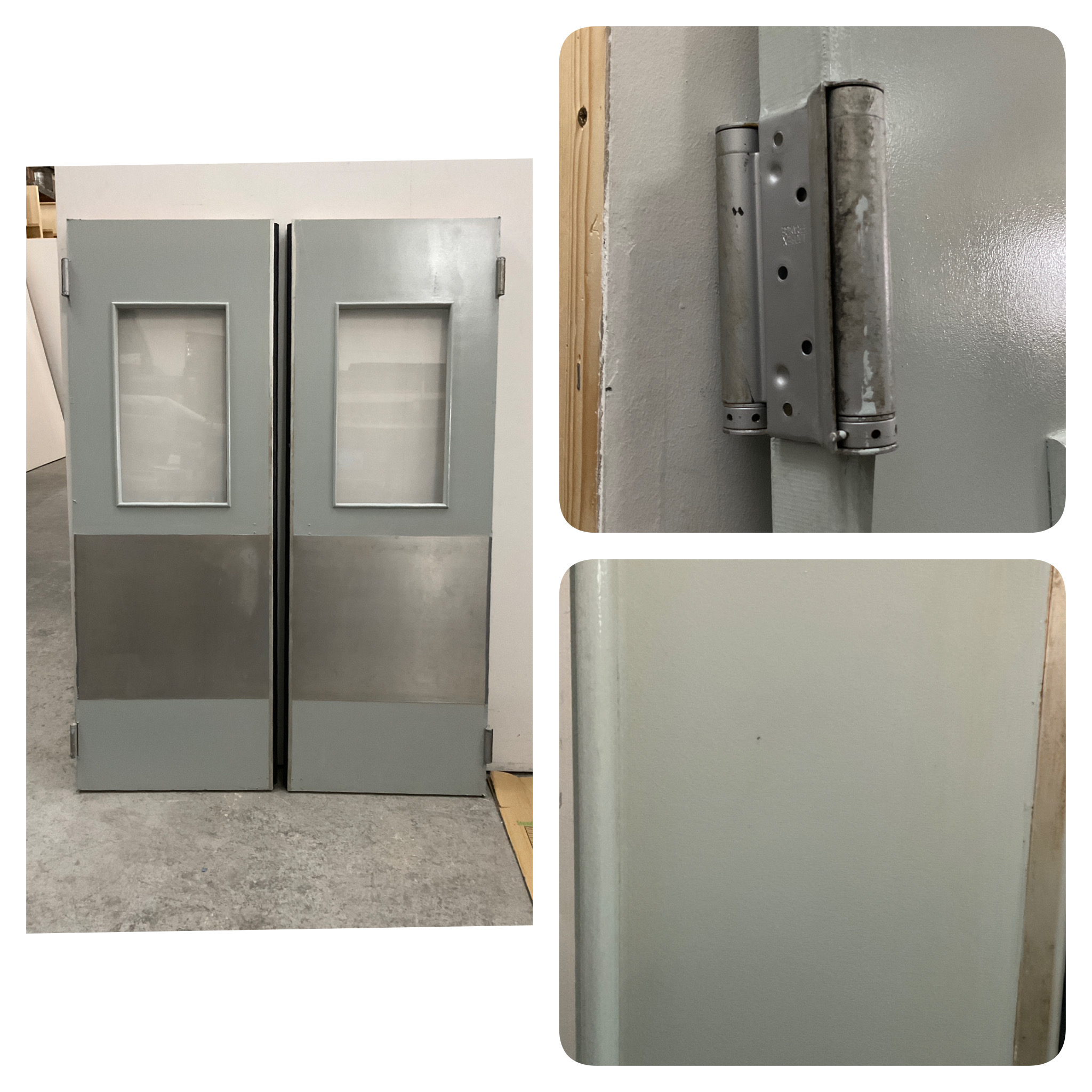 Une porte : 204 x 73 cm. Les deux portes : 204 x 146 cm. Vitre :35,5 x 67,5 cm.