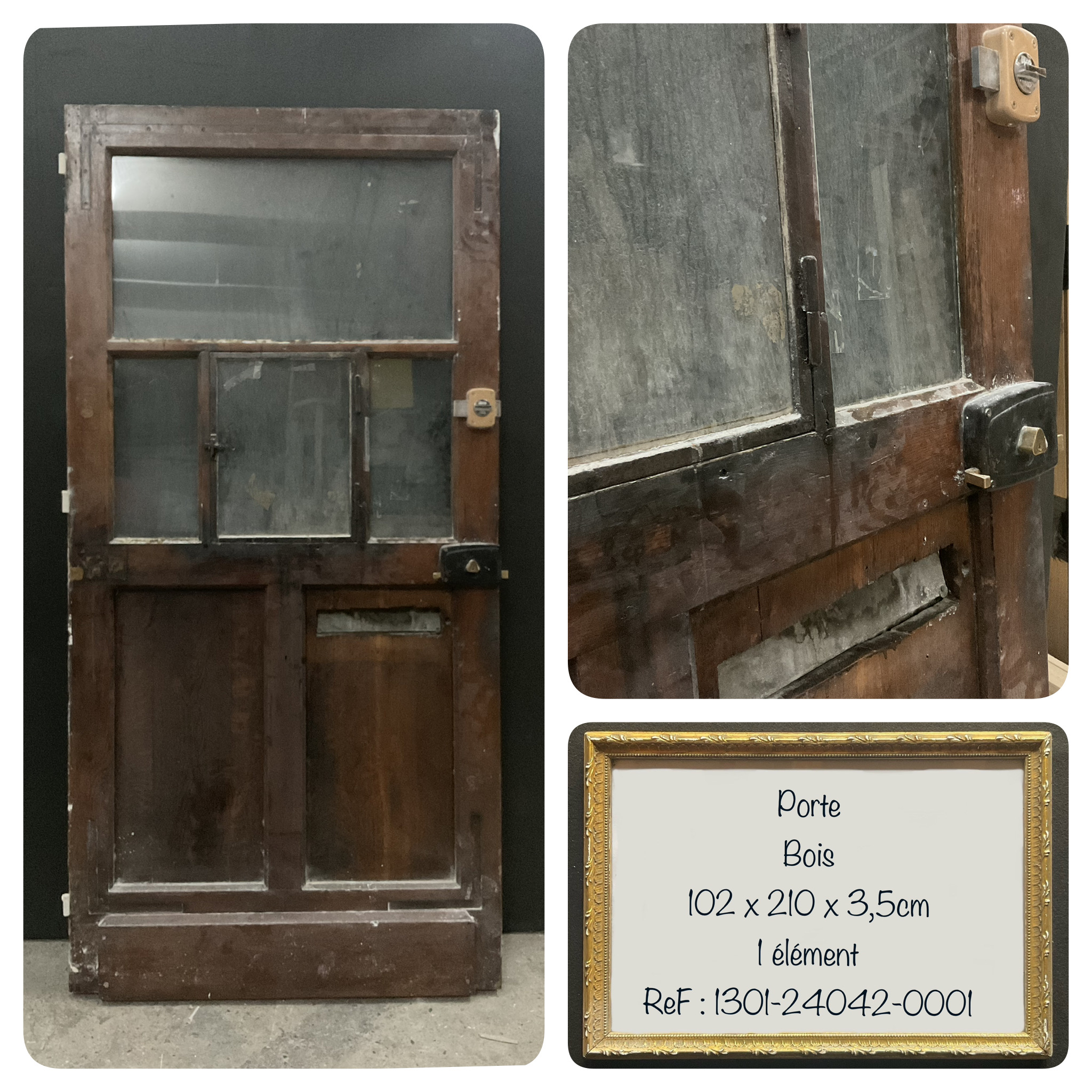 Porte : 210 x 102 cm. Vitre : 90 x 81 cm.