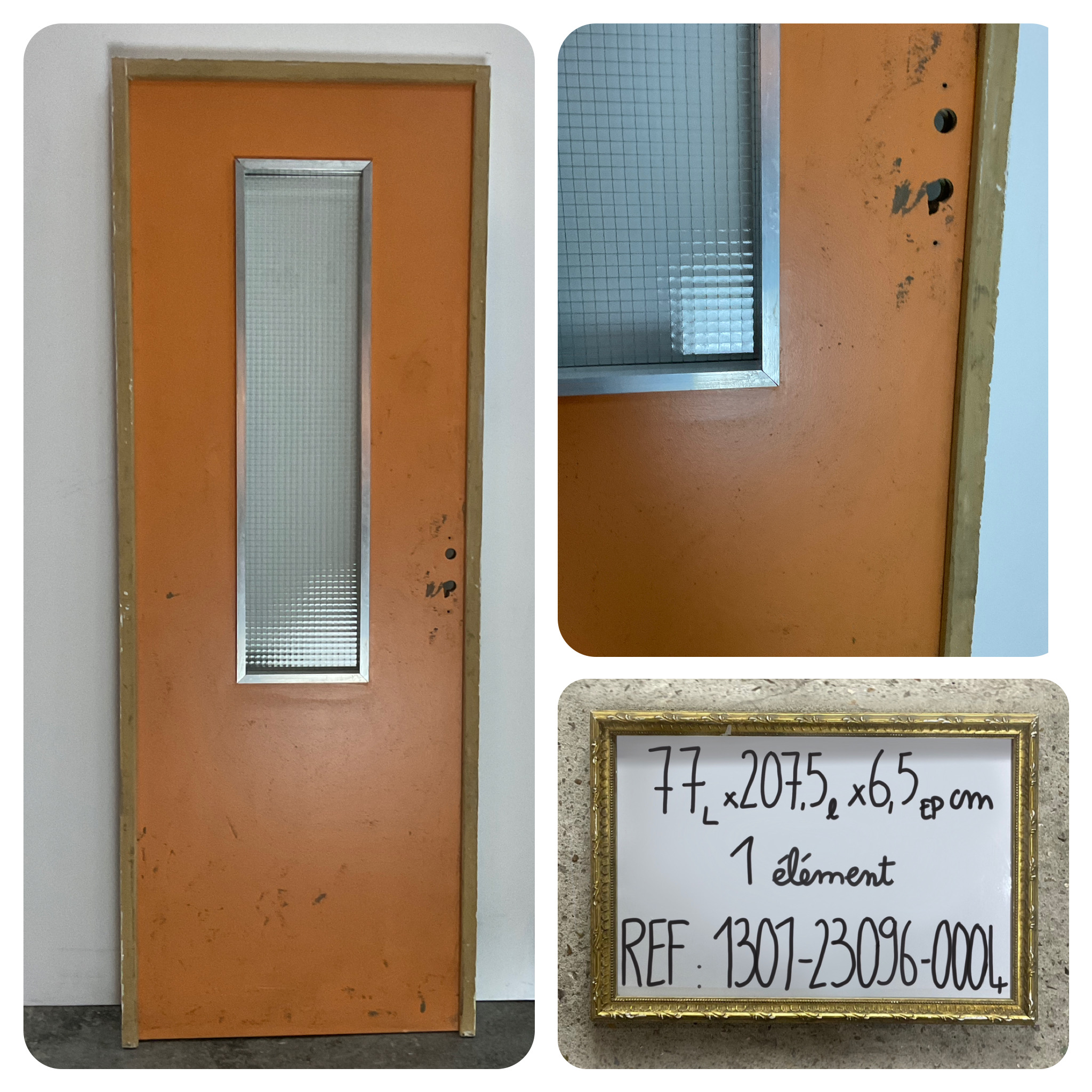 Bâti : 209,5 x 77,5 cm. Porte : 203,5 x 72 cm. Vitre: 105 x 25 cm.
