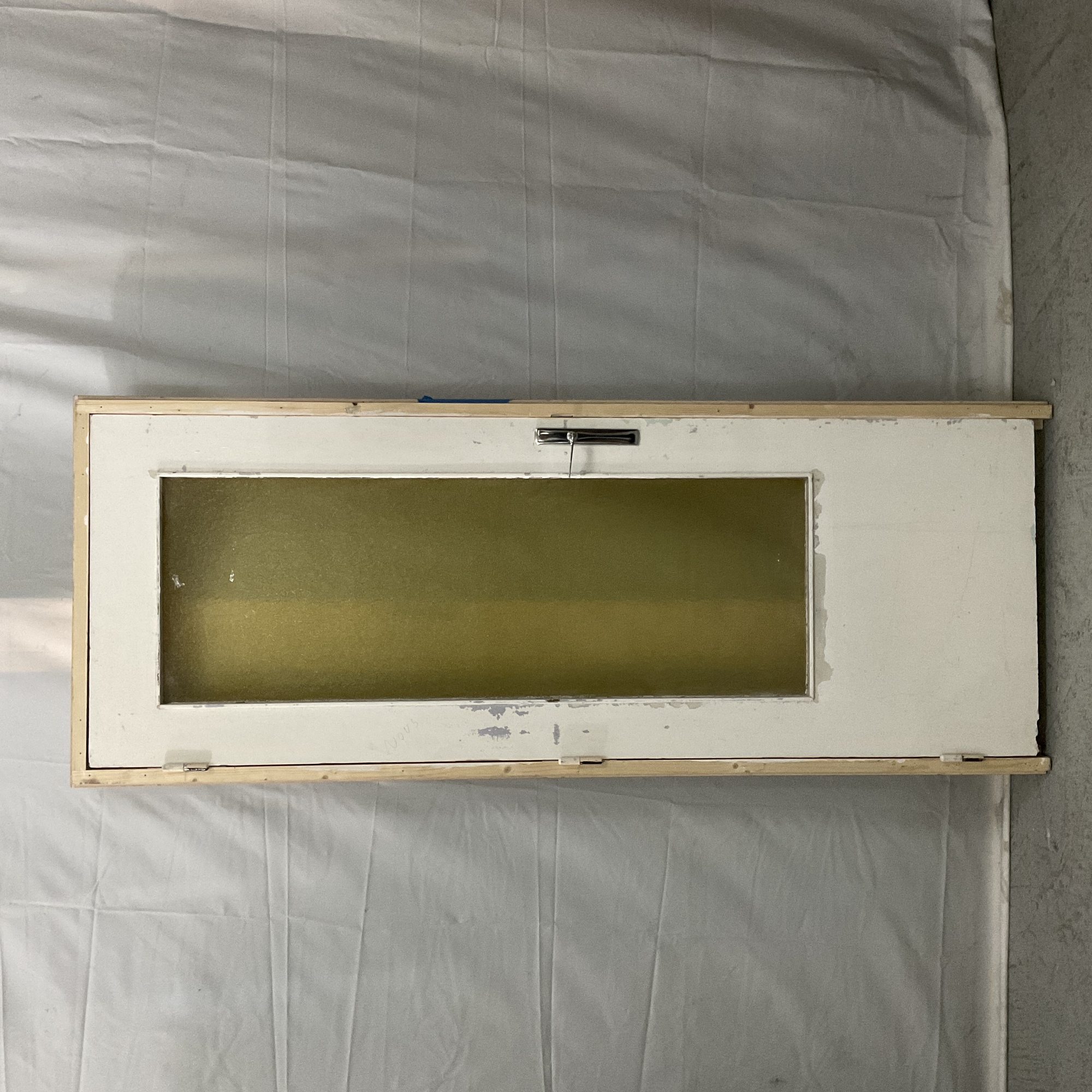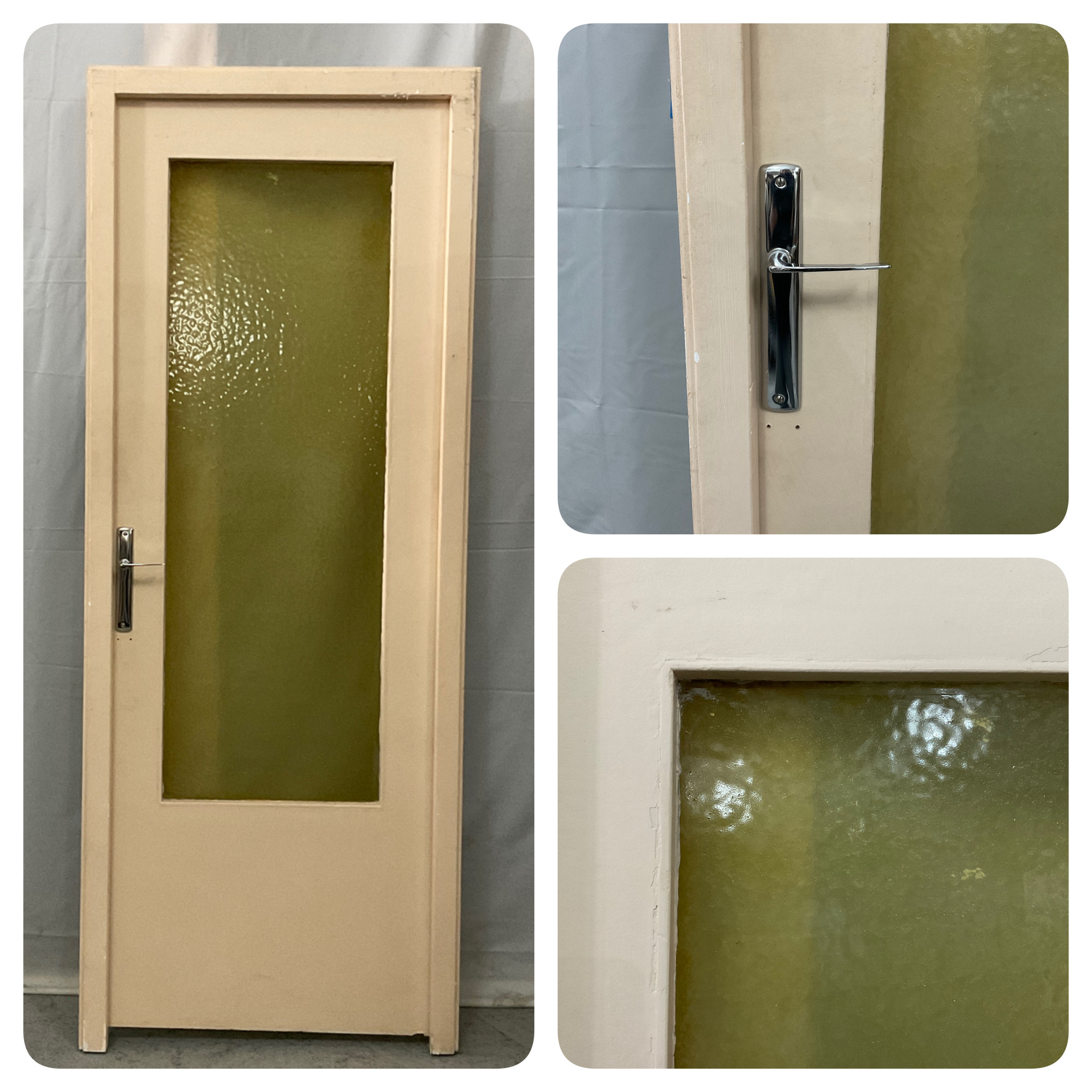 Bâti : 209 x 81,5 cm. Porte : 203 x 73 cm. Vitre : 137 x 47 cm.