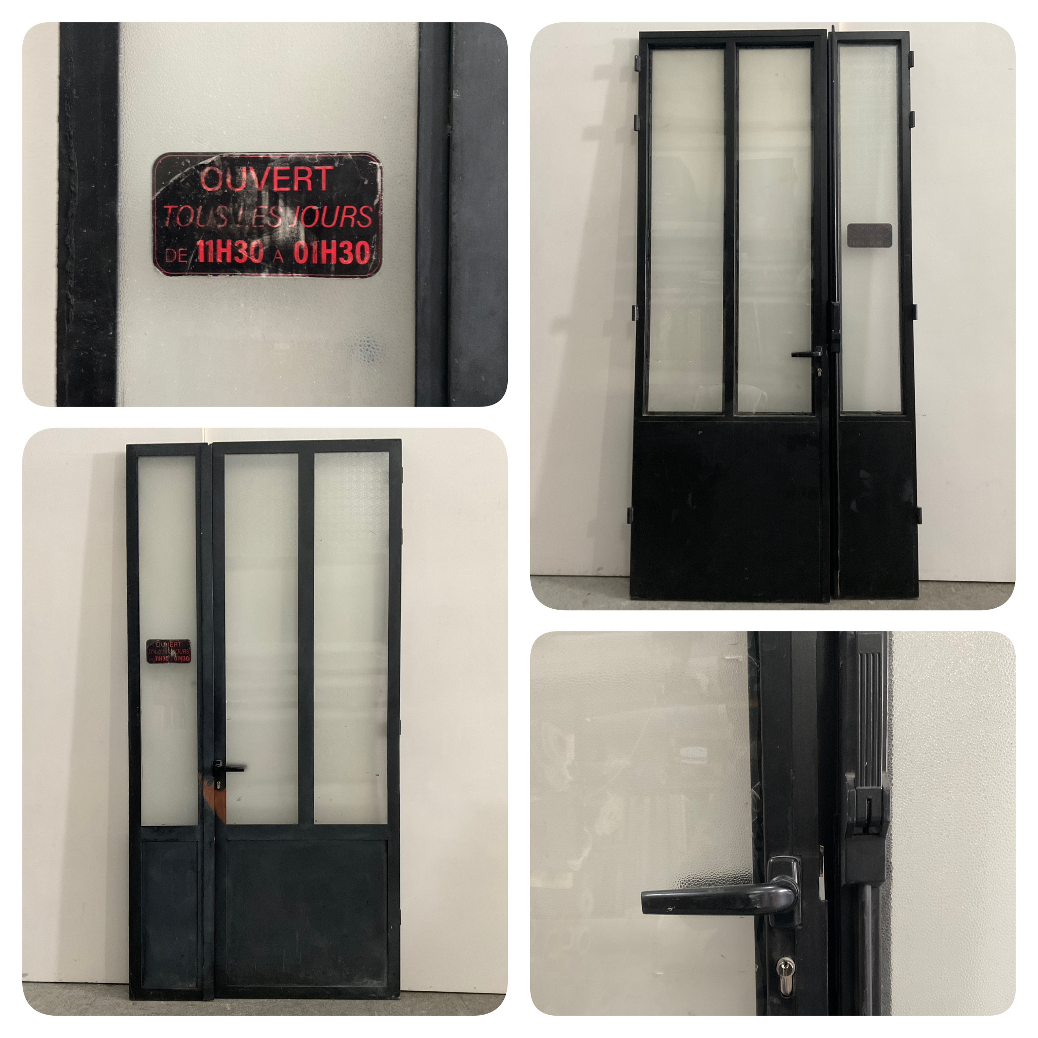 Porte : 247 x 83 cm - Tierce : 247 x 38 cm - Vitres porte : 164 x 33 cm - Vitre tierce : 164 x 27,5 cm