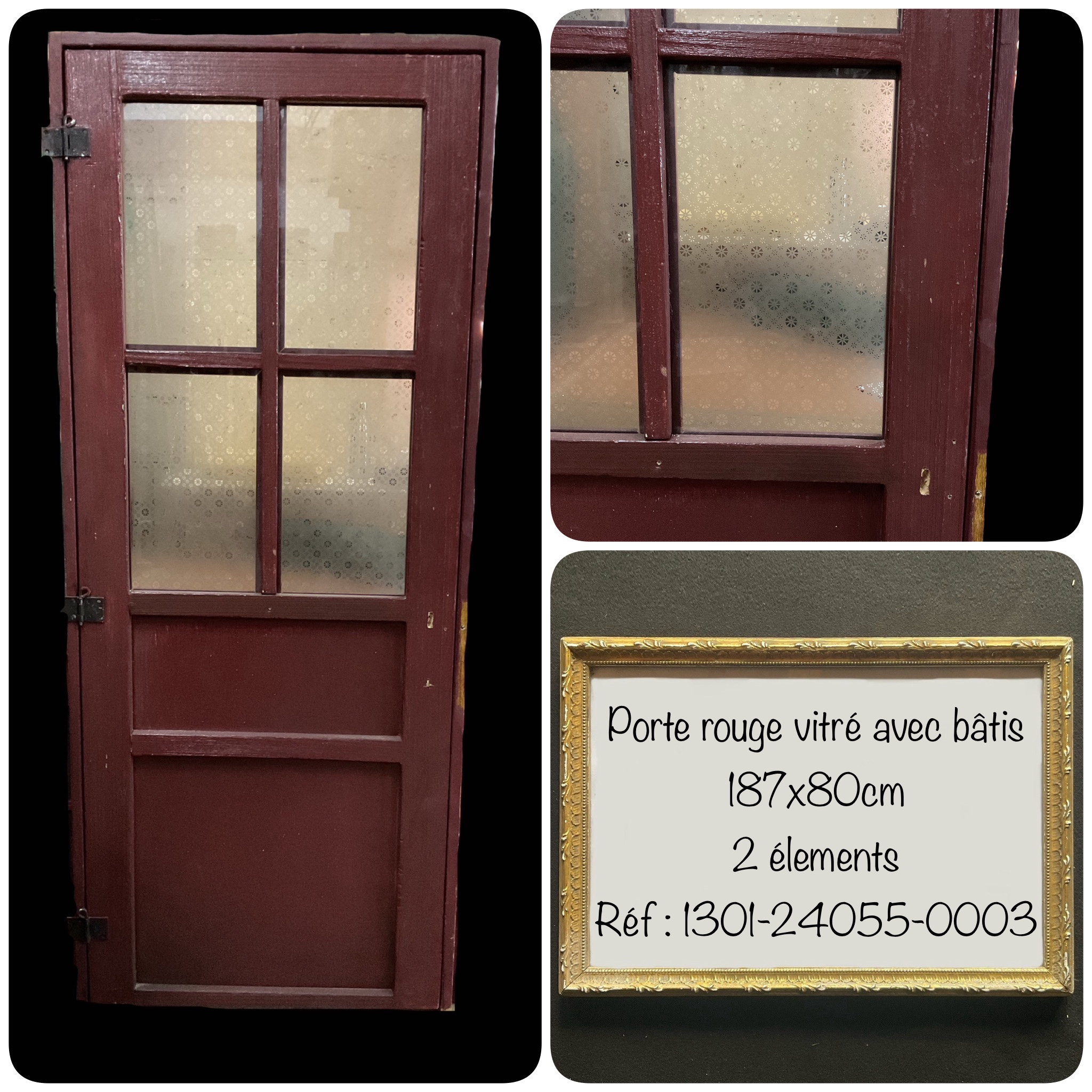 Porte vitrée en bois avec bâti, non praticable