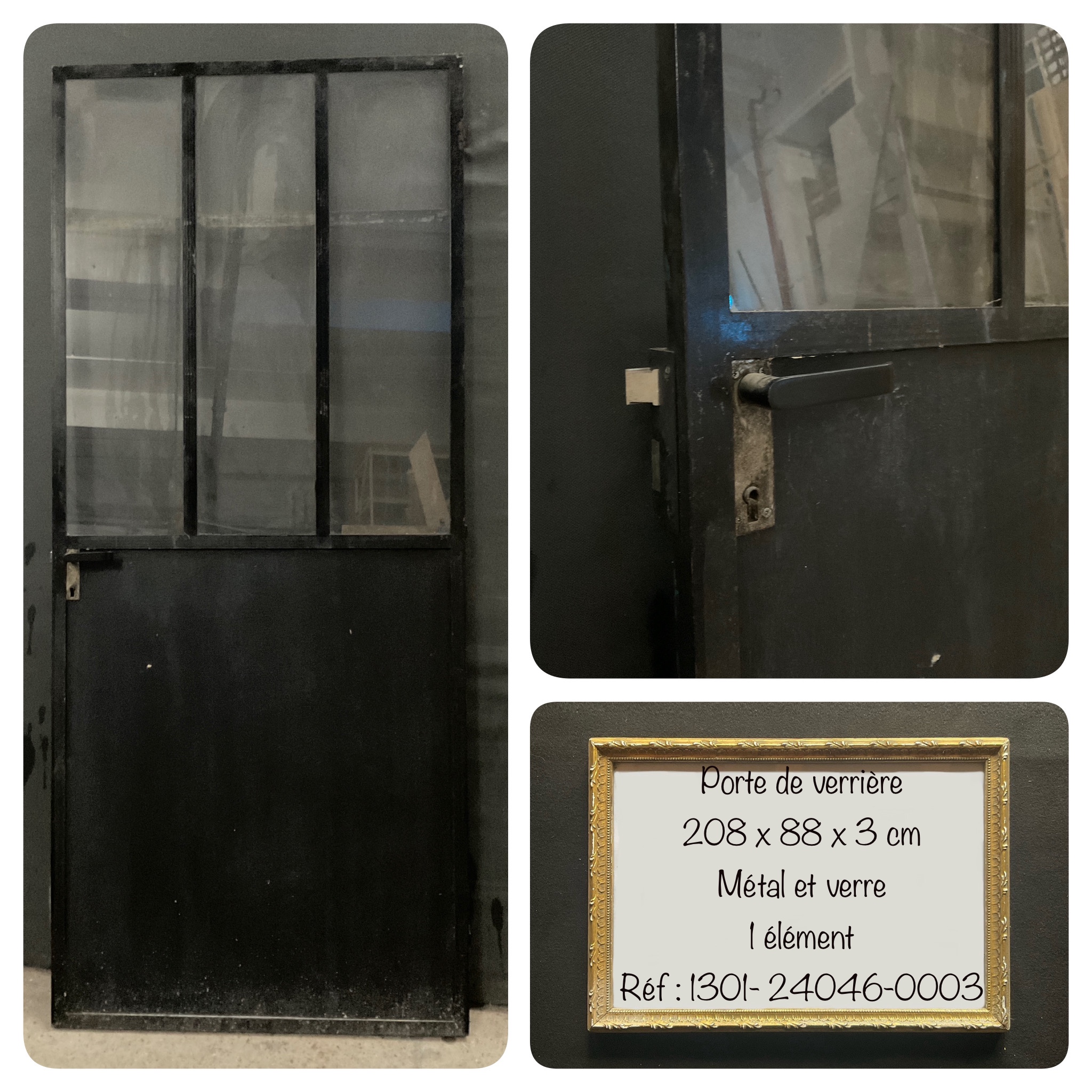 Porte : 208 x 88 x 3 cm - Vitres (3) : 101 x 29 cm.