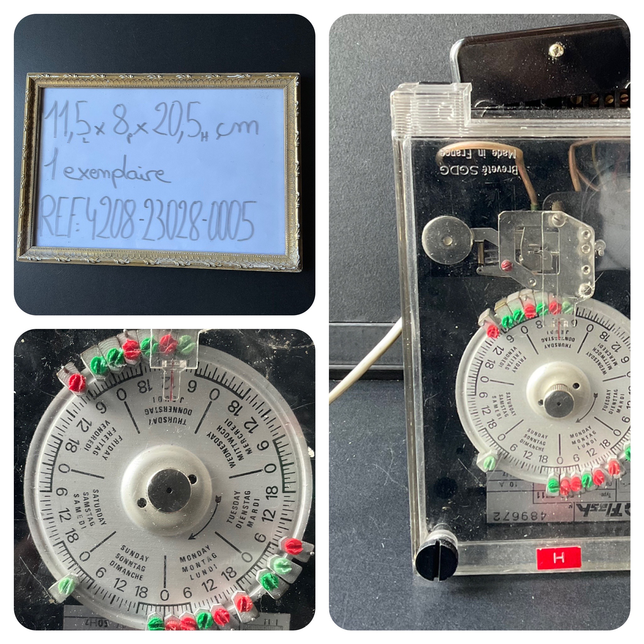 Programmateur électrique mécanique semaine, vintage, avec vitre, avec câble, marque "FLASH"