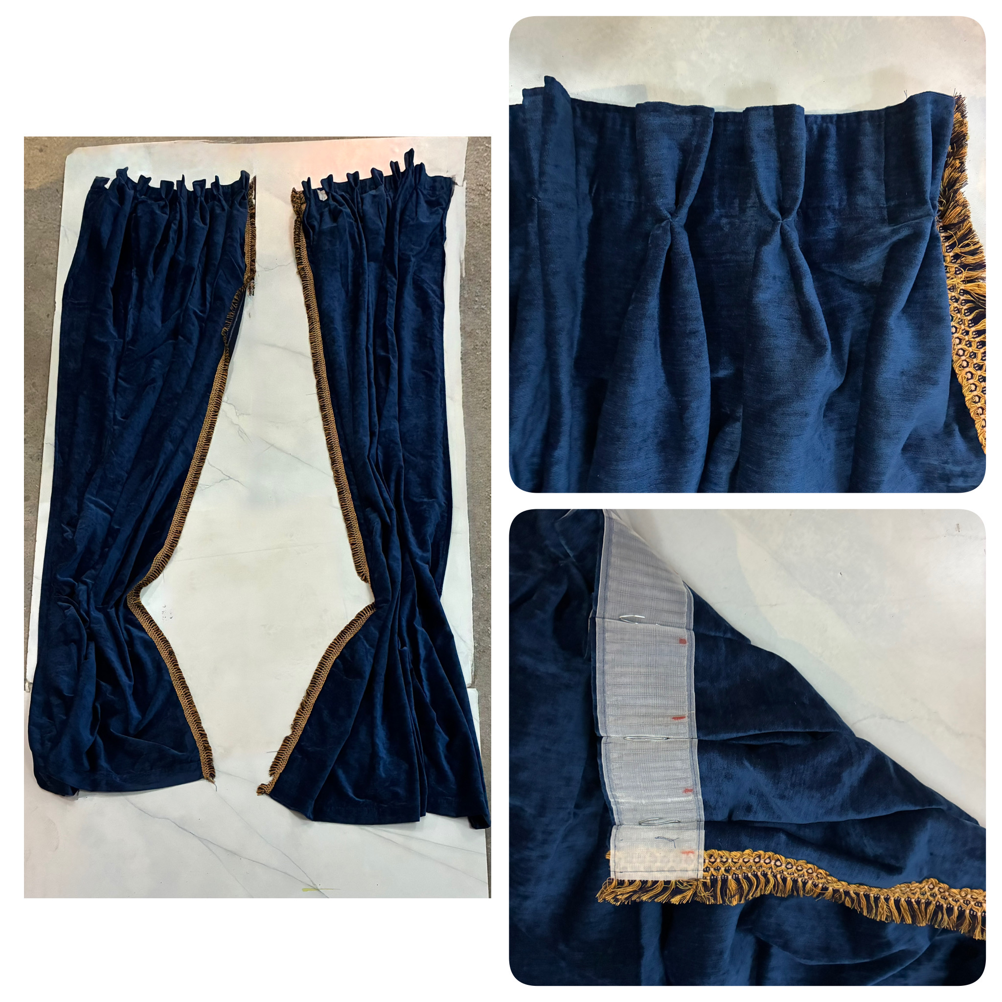 Rideaux bleu roi avec franges dorées