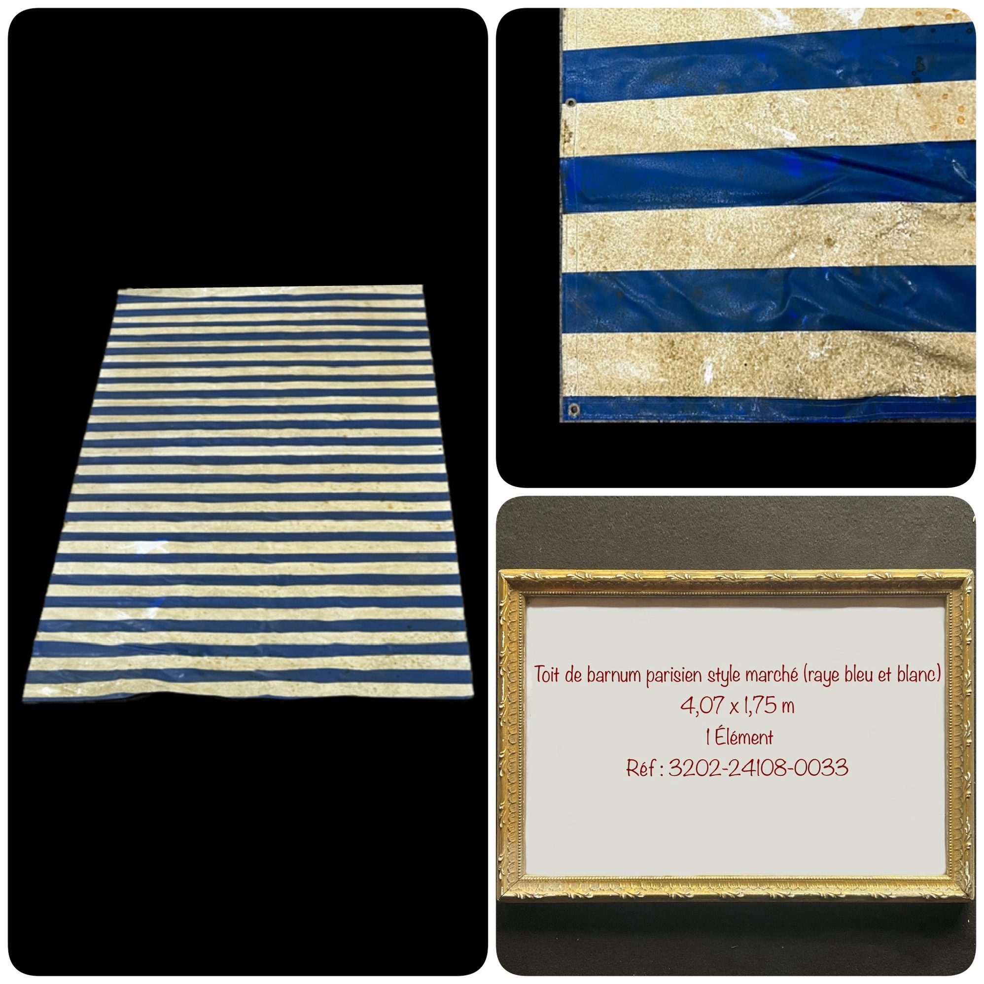 Toit de barnum parisien rayé bleu et blanc